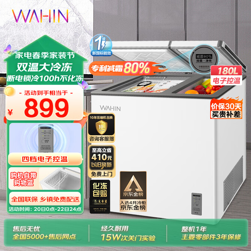 华凌 美的出品180升双温冰柜 家用商用囤货双箱冷柜 冷藏冷冻速冻冰柜双温冷柜卧式冰箱BCD-180DKEWH价格:899.00元!
