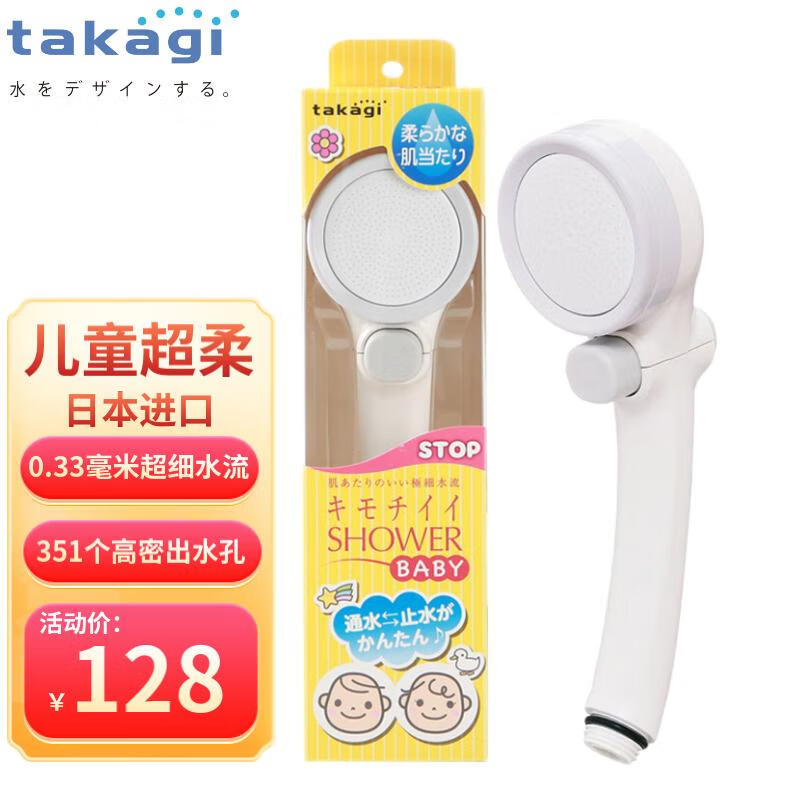 takagi儿童花洒超柔淋浴喷头美肤莲蓬头日本进口婴儿洗澡洗头除氯新生儿 JSB011A(超柔一键止水花洒)价格:138.00元!