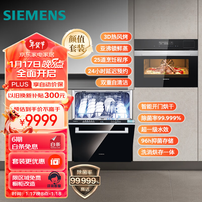 西门子14套大容量嵌入式家用智能开门烘干洗碗机 嵌入式蒸烤一体机套装 636Pro(含黑门板)+CS389价格:9999.00元!