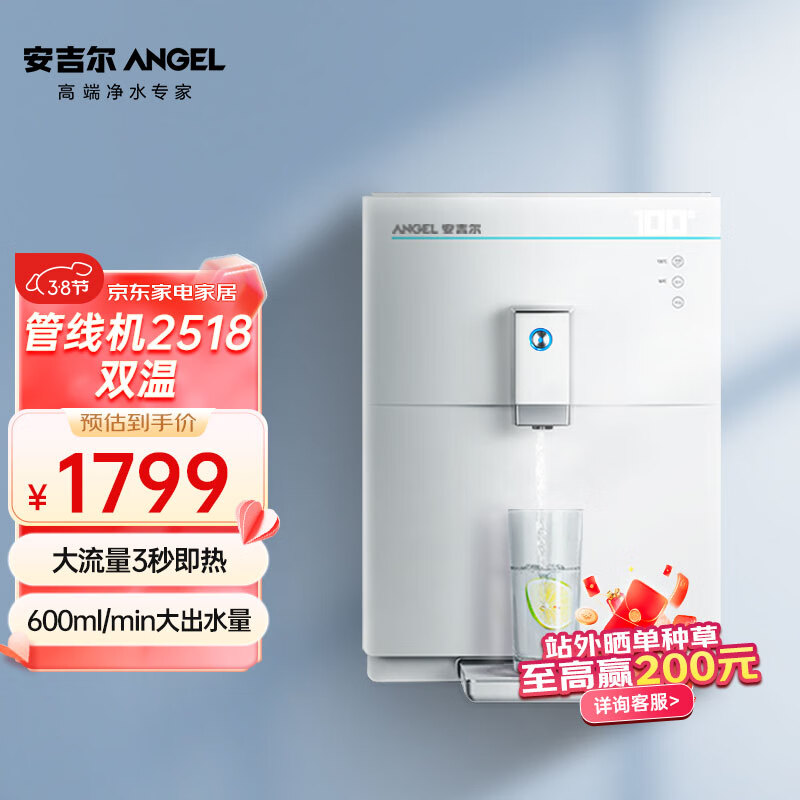 安吉尔家用管线机净水器伴侣秒速加热直饮一体智能触控LED显温制冷制热管线机Y2518BKD-K-G 价格:1799.00元!