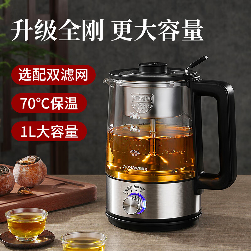 欧美特(OUMETE)煮茶壶煮茶器 喷淋式蒸汽恒温茶壶养生壶玻璃保温煮茶烧水壶蒸茶壶OMT-PC1020价格:199.00元!