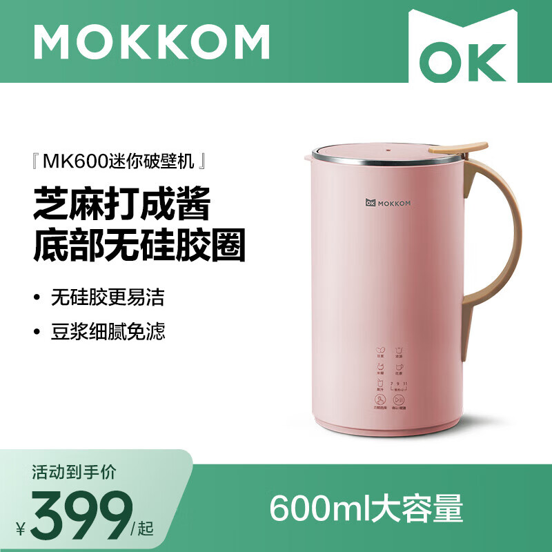 mokkom磨客豆浆机迷你破壁机1-2人家用小型容量多功能养生壶杯轻音榨汁料理机米糊辅食早餐机MK600A粉价格:399.00元!