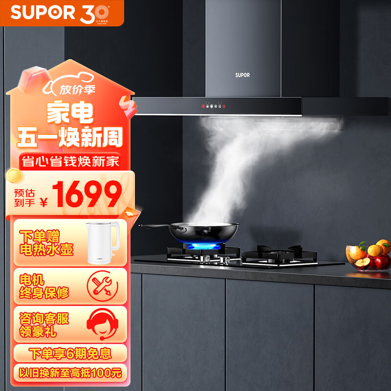 苏泊尔(SUPOR) 抽油烟机 烟灶套装22立方家用欧式吸油烟机燃气灶具套装挥手智控 自清洁 DT32+DB27天价格:1849.00元!