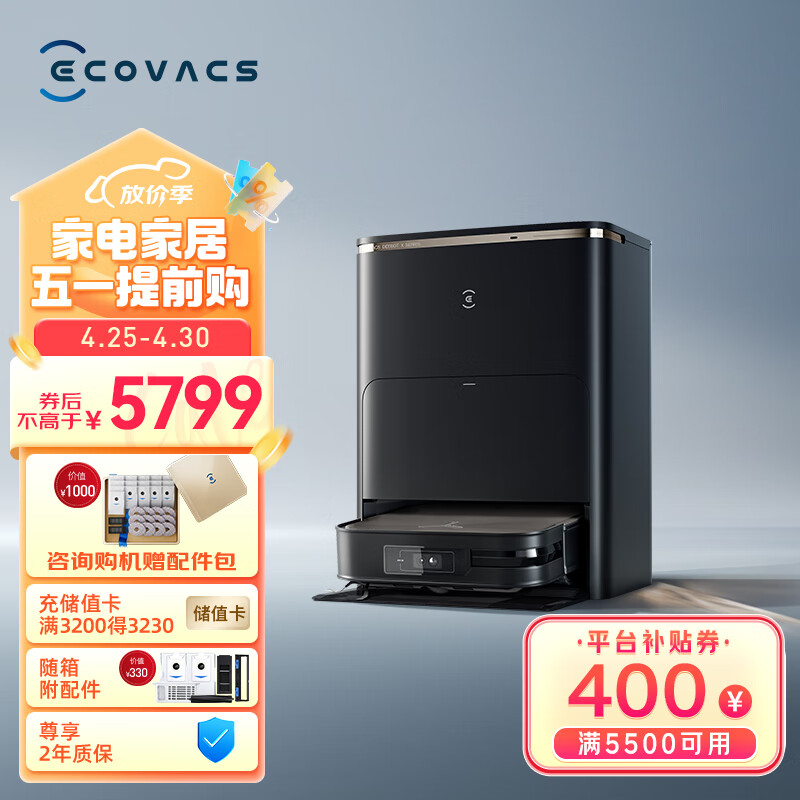 科沃斯(ECOVACS)X2Pro上下水版扫地机器人智能家用扫拖一体自动清洗自动集尘热水洗抹布上下水版-琉光金DEX86-17EA价格:6199.00元!