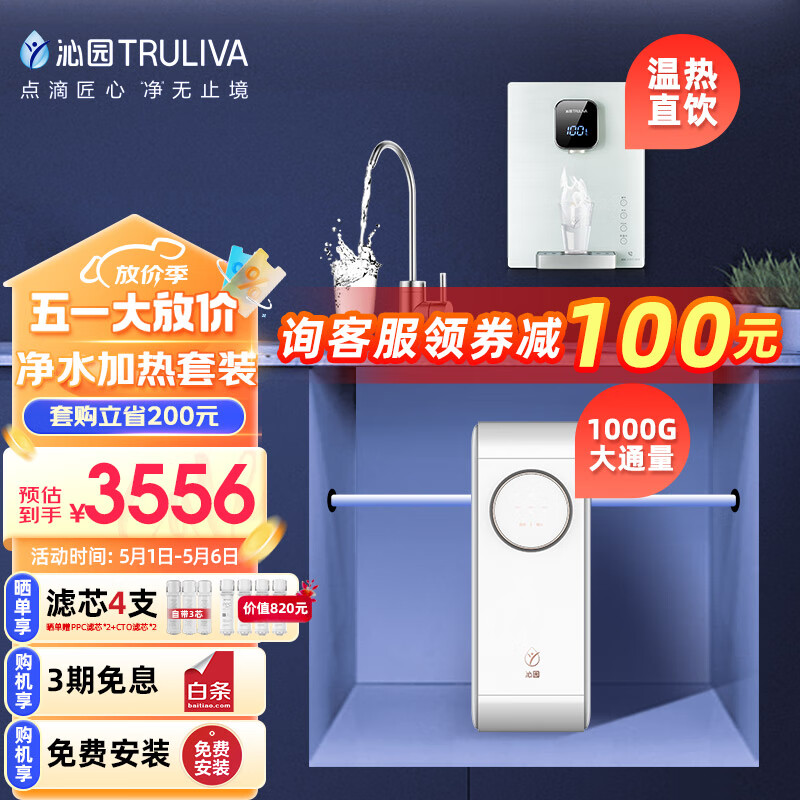 沁园(TRULIVA)小白鲸Pro1000G二件套装 净水器UR-S51046i+加热管线机LNW580-5W 加热净水器套装价格:3556.00元!