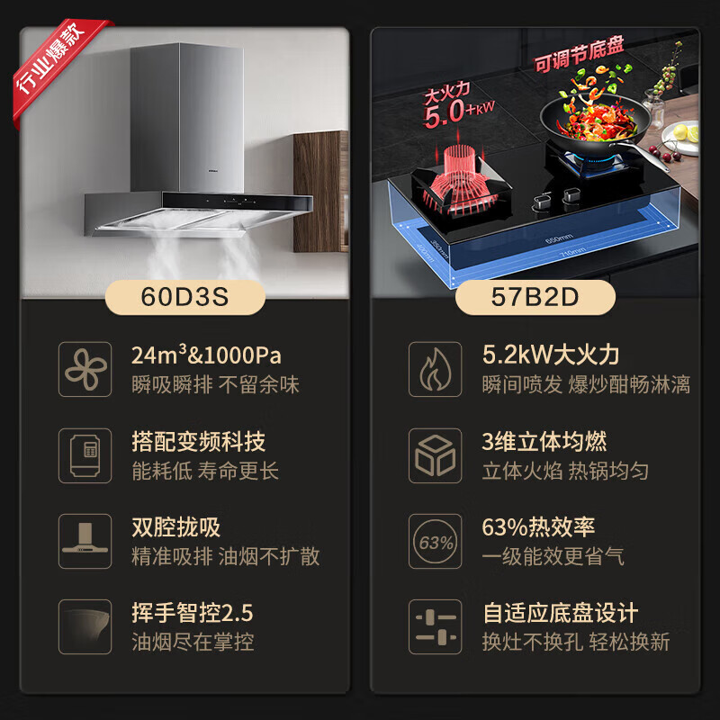 老板(Robam)欧式双腔变频24大风量抽油烟机家用燃气灶15套大容量洗碗机嵌入式厨房多件套60D3S+57B2DT+F80D黑价格:9498.00元!
