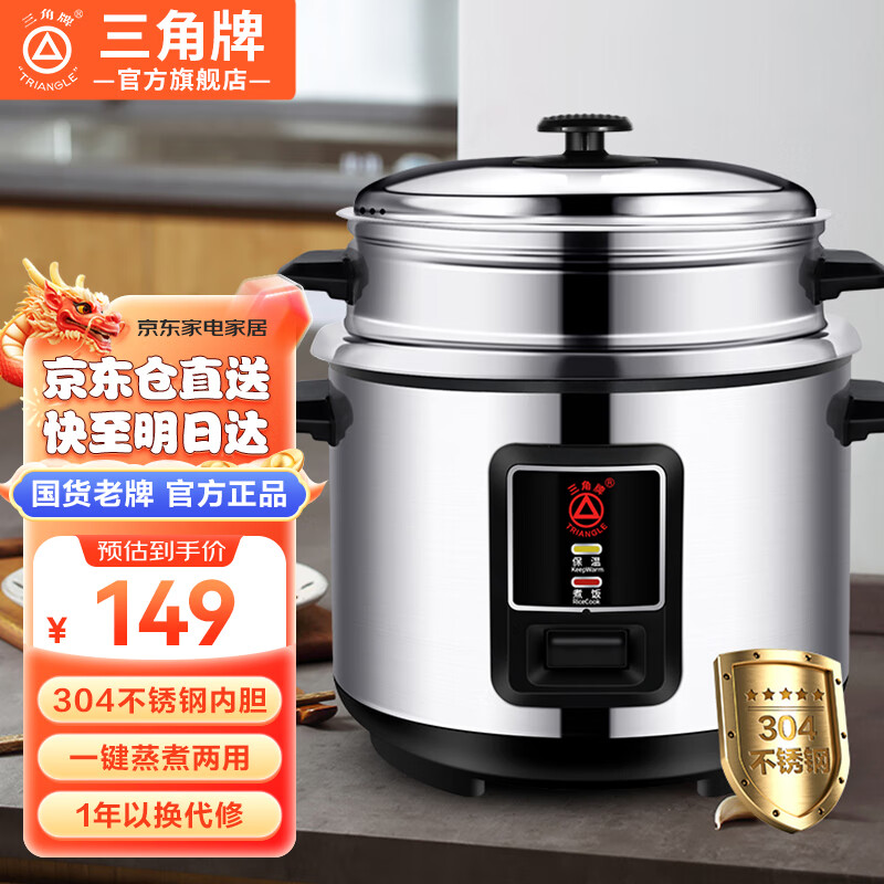 三角牌(Triangle) 电饭煲老式电饭锅不锈钢家用煮饭锅米饭锅带蒸笼家庭用 304不锈钢内胆丨 3L价格:159.00元!
