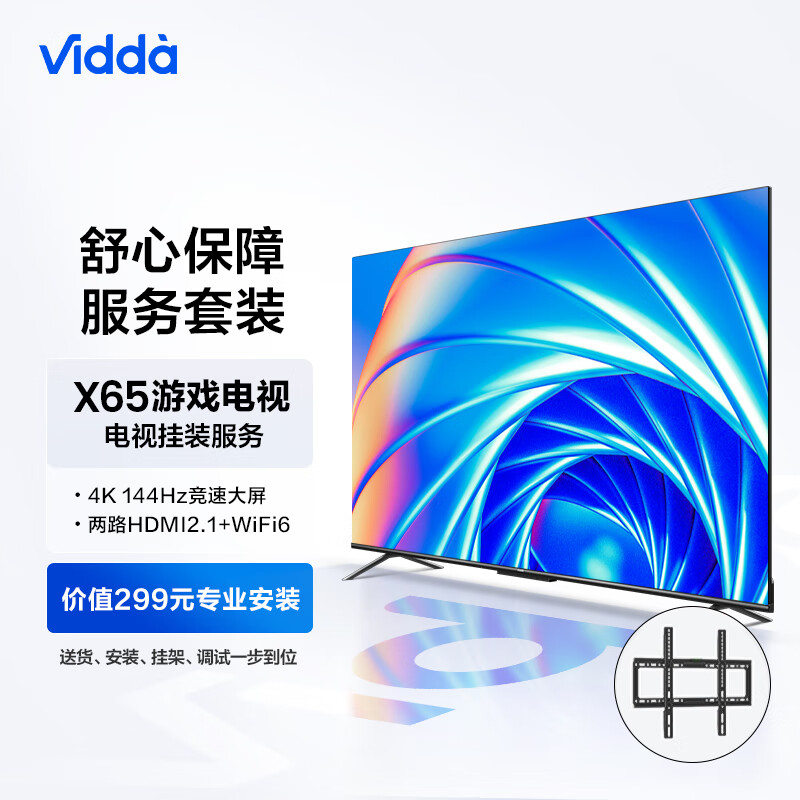 Vidda海信X65+专属挂装服务 一站式服务体验套装 送货 安装 挂架 调试一步到位价格:3039.00元!