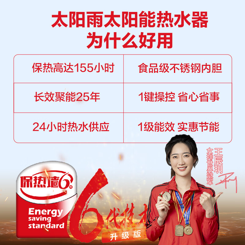 太阳雨(Sunrain)太阳能热水器家用全自动上水 光电两用 一级能效 配智能仪表电加热 220L保热墙6代30管价格:4980.00元!