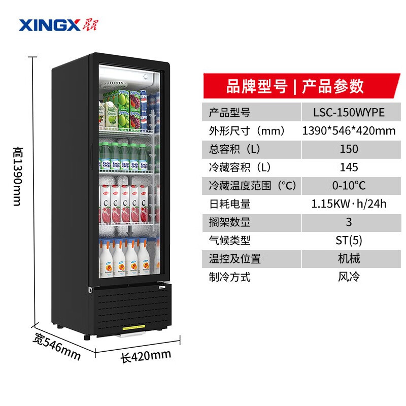 星星(XINGX)展示柜冷藏饮料柜一级能效单门立式冰柜商用保鲜冰箱风冷直冷超市便利店陈列柜啤酒水果柜 风冷无霜2级能效140升 LSC-150WYPE价格:1399.00元!