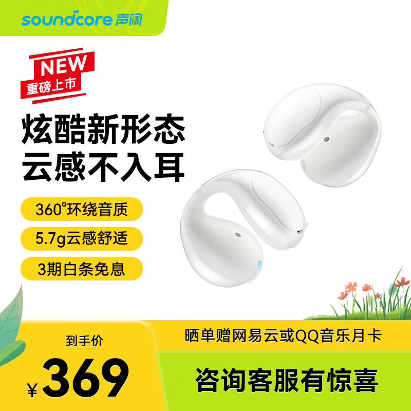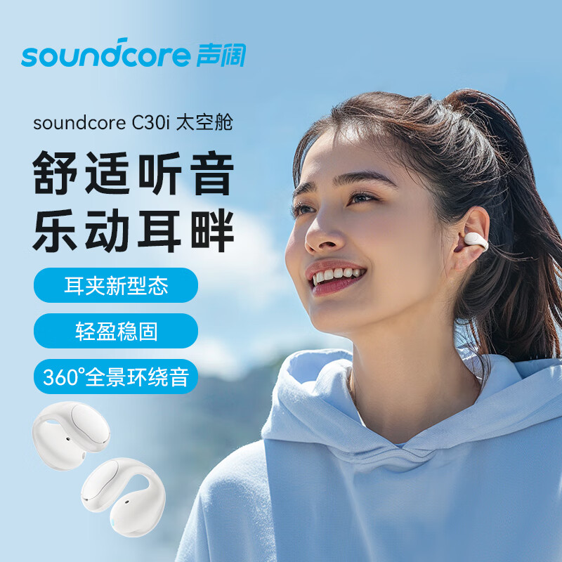 声阔声阔C30i太空舱耳夹式蓝牙耳机不入耳无线挂耳式运动户外跑步超长续航强劲音质适用华为小米苹果白价格:369.00元!