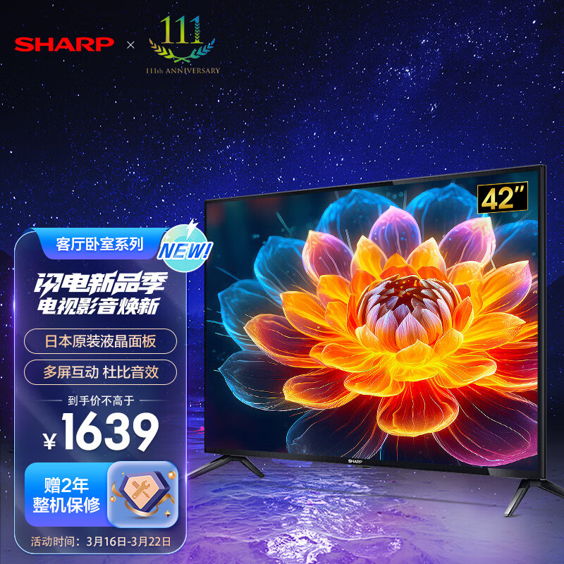 SHARP夏普电视2T-C42A7DA 42英寸液晶彩电全高清1+8G原装面板FHD多屏互动智能UI智能平板电视价格:1619.00元!
