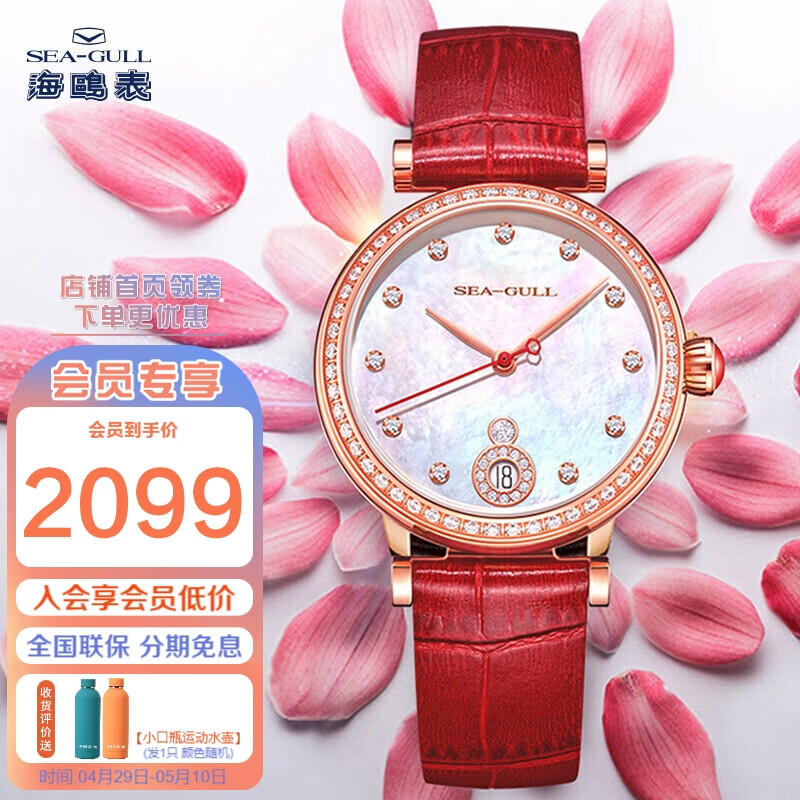 海鸥(SEAGULL)手表女士自动机械表 女表礼物 心海日历贝母盘腕表319.15.6140L价格:2639.00元!