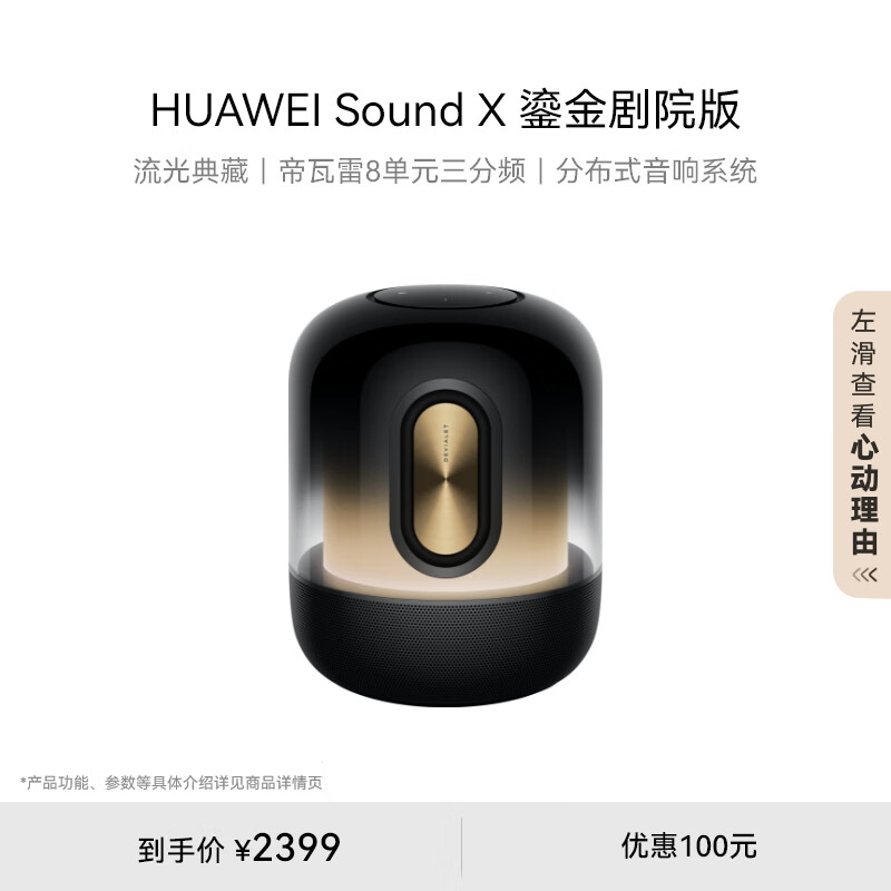 华为Sound X 鎏金剧院版 蓝牙音箱 家用桌面电脑音响 帝瓦雷8单元三分频 流光典藏 重低音炮价格:2299.00元!