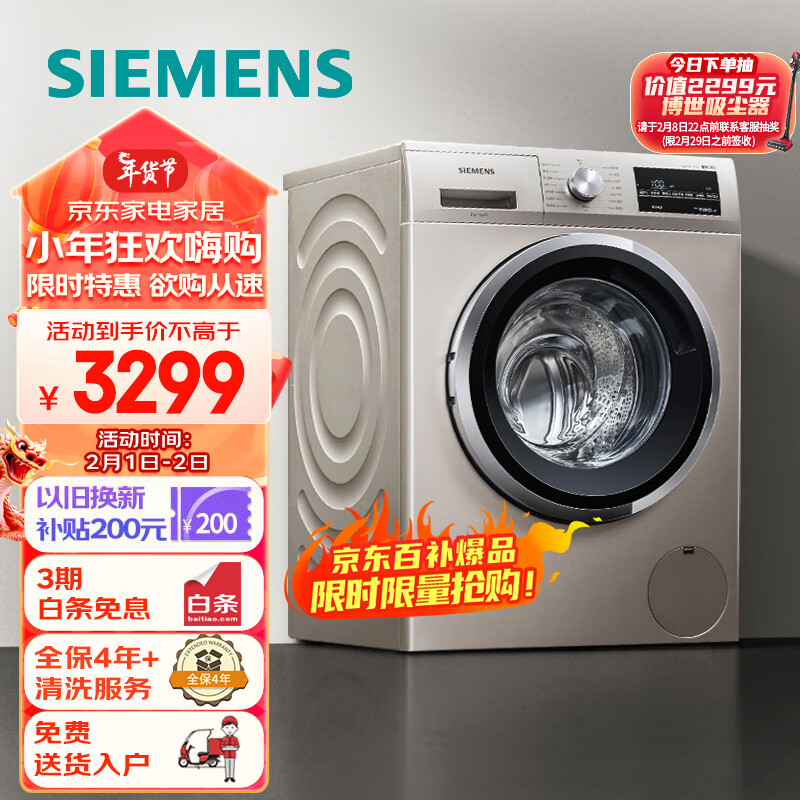 西门子(SIEMENS) 10公斤滚筒洗衣机全自动 BLDC变频电机 专业羽绒洗 混合洗 防过敏 WM12P2692W价格:3299.00元!