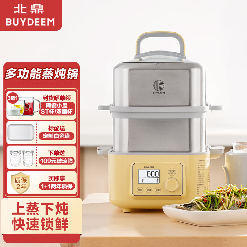 北鼎蒸炖锅 隔水炖盅全自动预约电炖锅家用多用途锅【升级版小鹅黄G56A】(含炖盅套件+二层蒸架)价格:1658.00元!