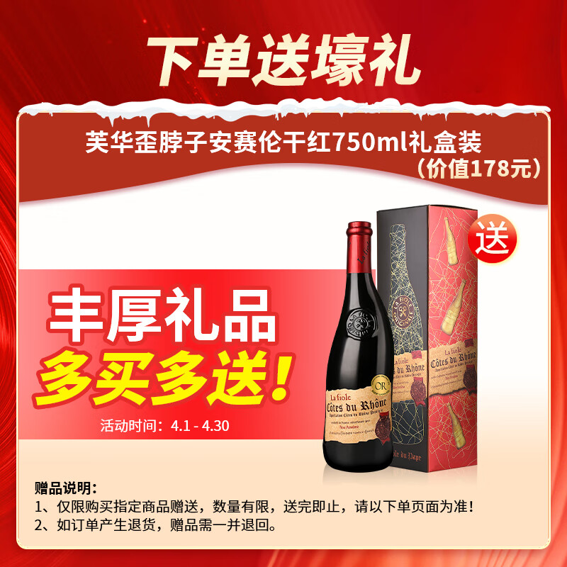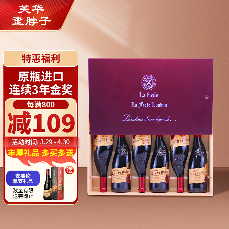 芙华(La Fiole)歪脖子红酒 法国原瓶进口 安赛伦干红葡萄酒整箱礼盒装 750ml*6支价格:839.00元!