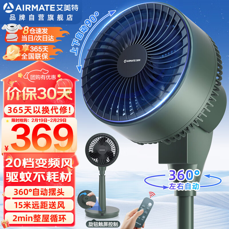 艾美特(AIRMATE)【四季可用】京东小家APP智能空气循环扇电风扇家用20档直流变频360度自动摇头台立两用落地式风扇 (智能芯片驱蚊不耗材智能遥控升级款)RD93价格:399.00元!