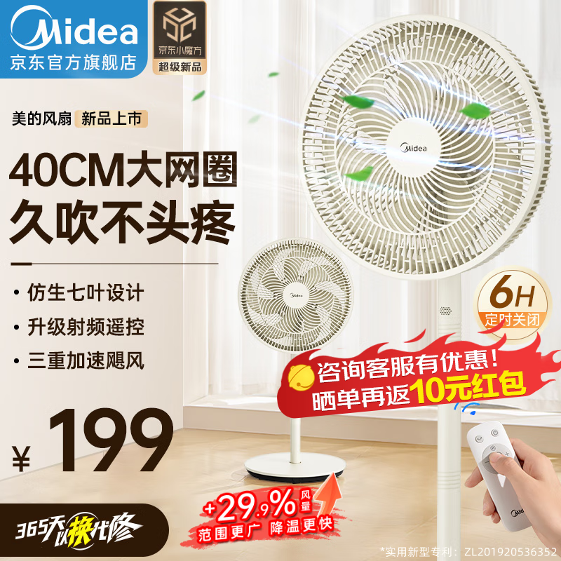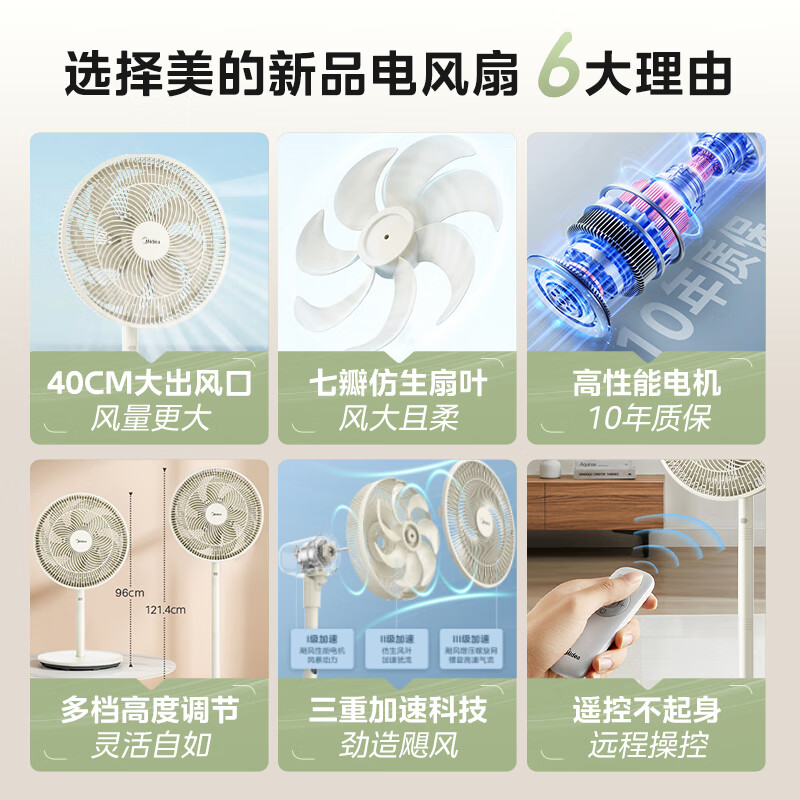 美的(Midea)电风扇落地扇台扇家用大风量电扇宿舍轻音低噪台式桌面两用节能 【七叶飓风 遥控定时】40CM大网圈SAH35MR价格:299.00元!