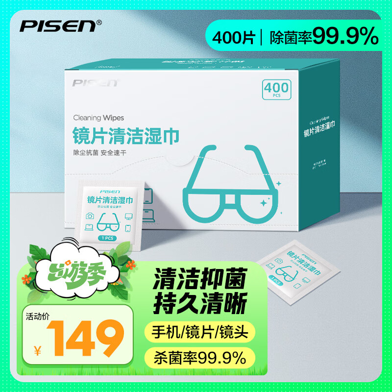 PISEN品胜 眼镜清洁 镜头清洁 屏幕清洁擦手机擦相机 400片加大加厚湿巾价格:149.00元!