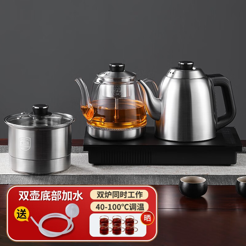 FUNORK全自动上水电热水壶泡茶烧水壶茶台茶桌茶几一体嵌入式电茶壶抽水茶具电茶炉 不锈钢三件套(长宽37*20cm)价格:659.00元!