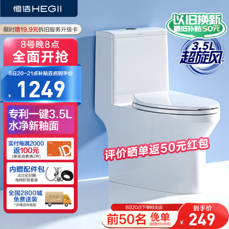 恒洁(HEGII)马桶561 超旋风大冲力水净釉面节水坐便器HC0561DT-305价格:1299.00元!