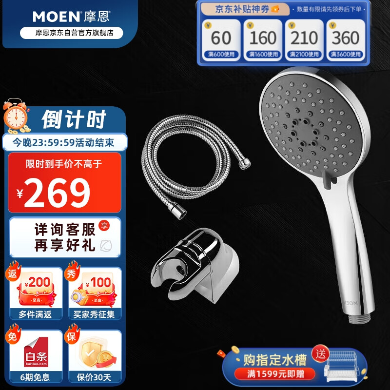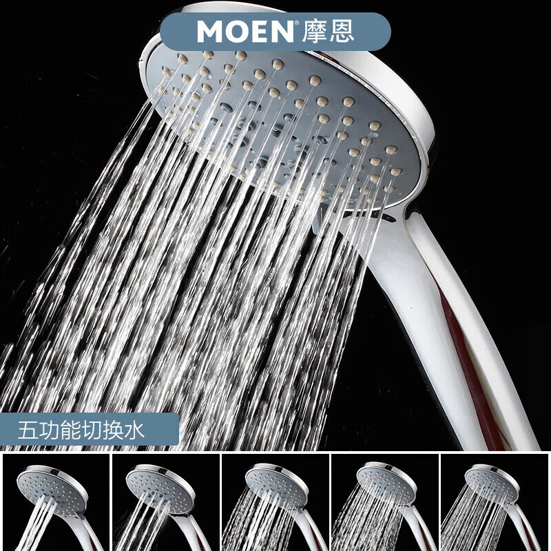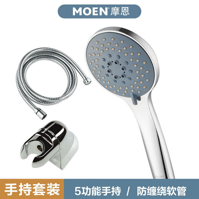 摩恩(MOEN)淋浴花洒套装 五功能增压手持 防缠绕花洒软管带底座支座 三件套价格:269.00元!