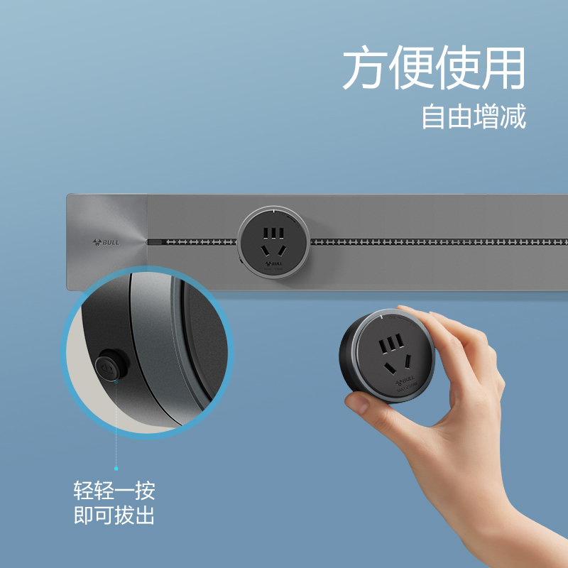 公牛(BULL)明装 轨道插座 可移动墙壁插座壁挂式/插线板/接线板 多功能免打孔 75厘米轨道+4个五孔插座灰色价格:599.00元!