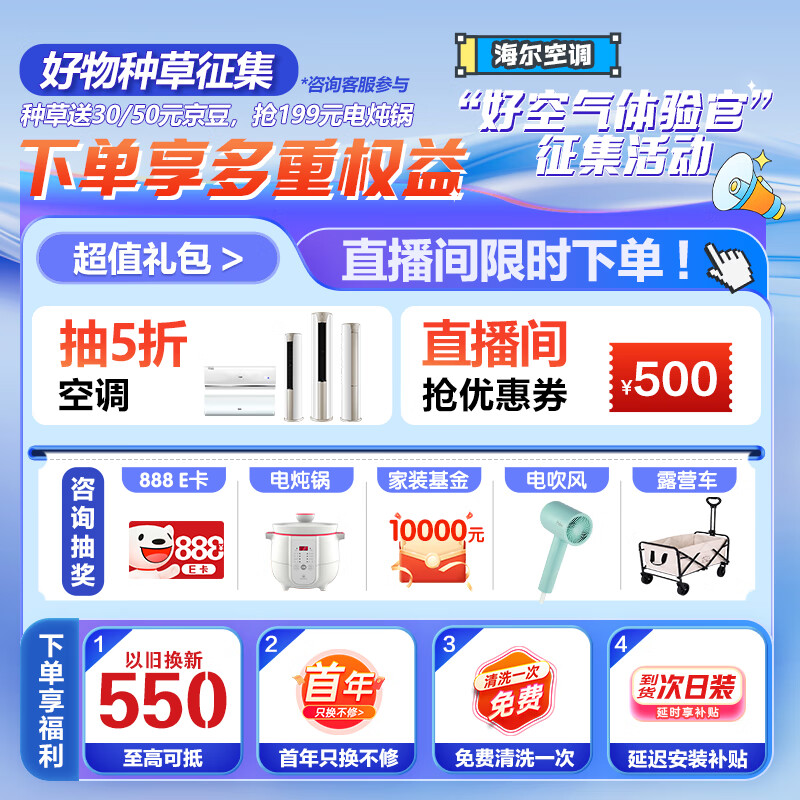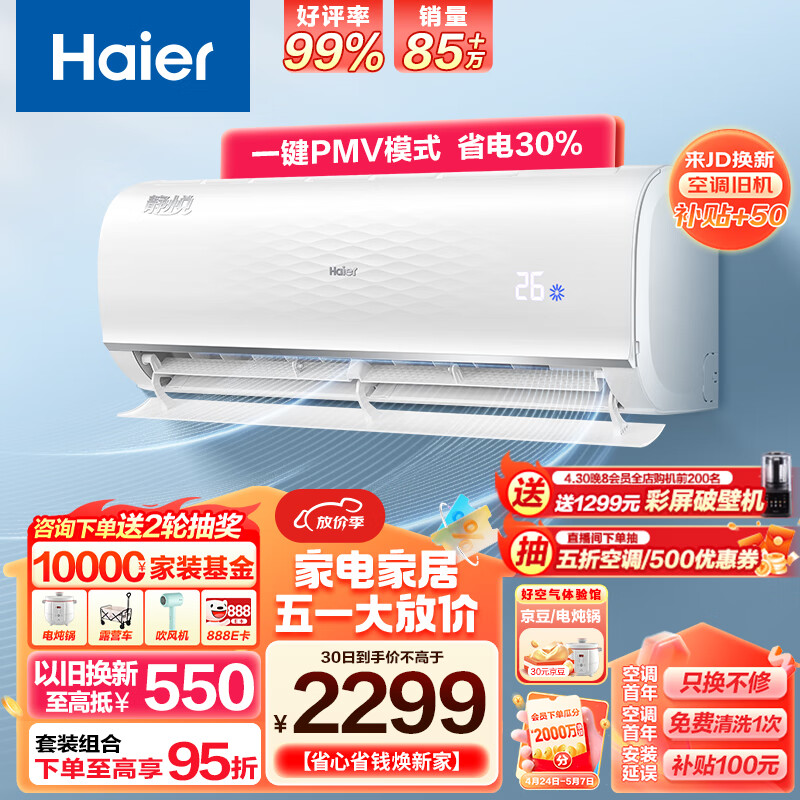 海尔(Haier) 大1匹 静悦 新一级 变频省电冷暖卧室挂式空调挂机光感护眠KFR-26GW/B1KGC81U1 以旧换新价格:2299.00元!