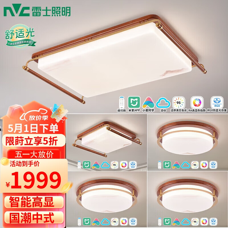 雷士(NVC)吸顶灯客厅灯木艺大尺寸新中式灯具智能高显套餐 WHXD140W/F-03价格:3998.00元!