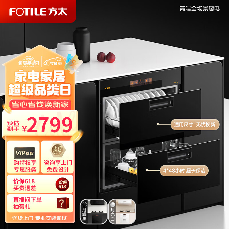 方太(FOTILE)消毒柜家用 母婴级消杀 WIFI远程智控 100升容量 嵌入式双层消毒碗筷柜ZTD100J-01-JF1E.i(黑)价格:2799.00元!