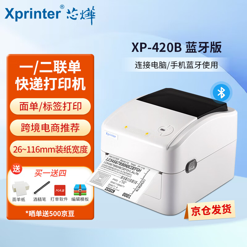 芯烨(XINYE)XP-420B 快递电子面单打印机蓝牙版 热敏标签纸不干胶条码机 仓储物流单二维码一、二联单打印价格:428.00元!