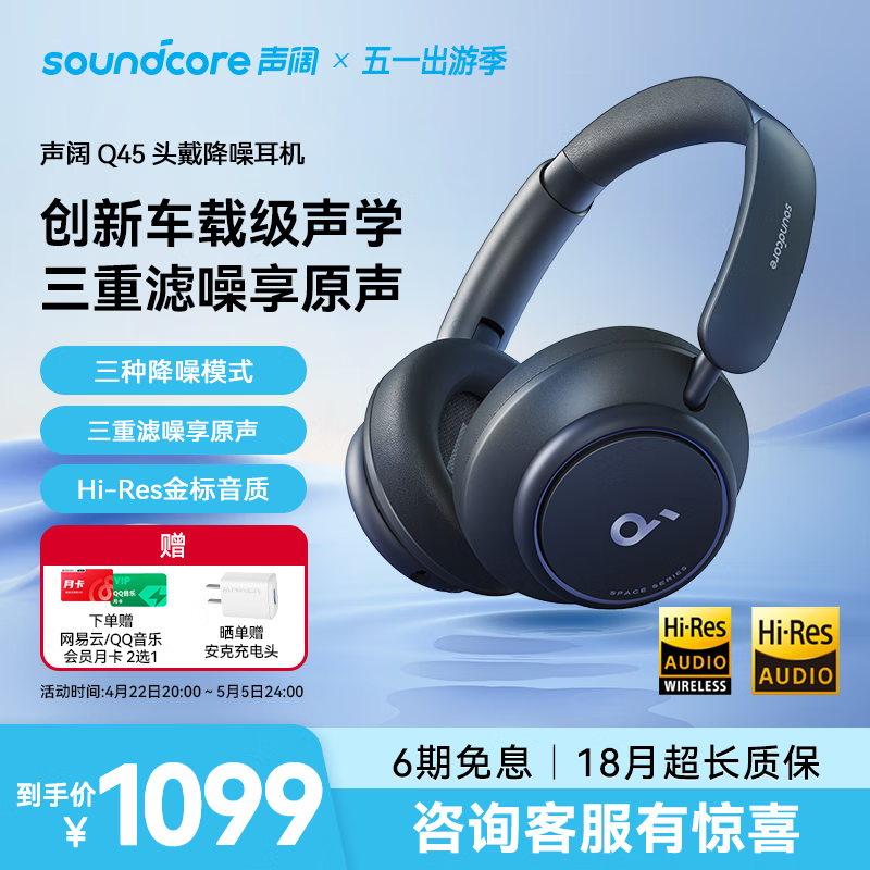 声阔Soundcore Space Q45声阔头戴式无线蓝牙HIFI耳机三重动态滤噪适用苹果/华为手机黑色价格:1099.00元!