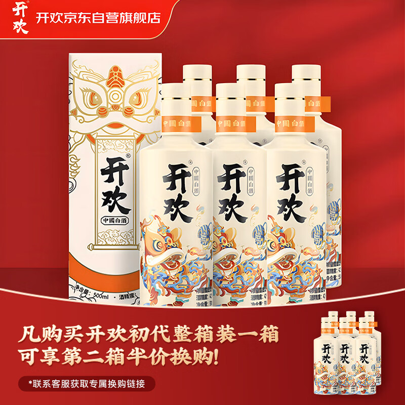 开欢初代系列 浓香型白酒 42度 500ml*6瓶 整箱装价格:499.00元!