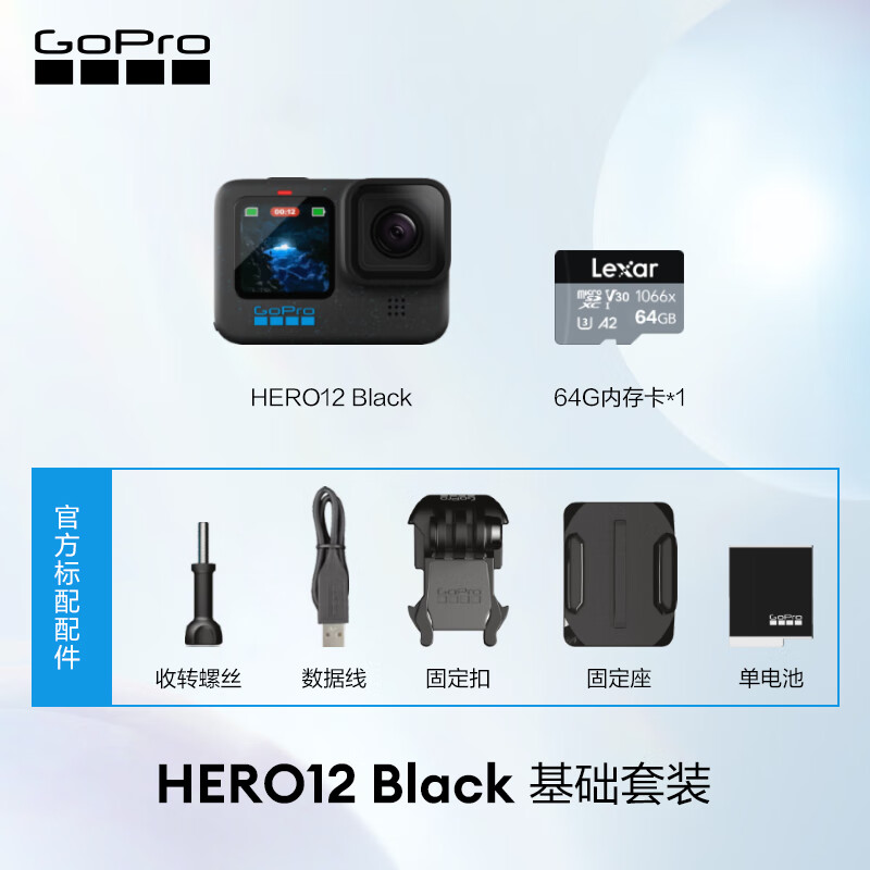 GOPRO HERO12 Black防抖运动相机 摩托车骑行运动摄像机 潜水水下相机 自行车记录仪 基础套装 HERO 12 Black价格:2668.00元!