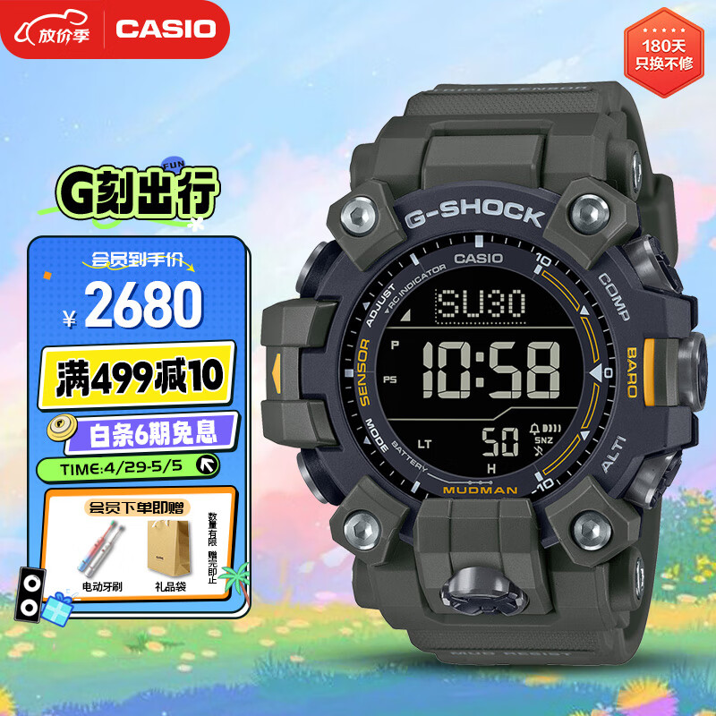 卡西欧(CASIO)手表男士G-SHOCK液晶泥王户外运动电子日韩表520礼物GW-9500-3价格:2690.00元!
