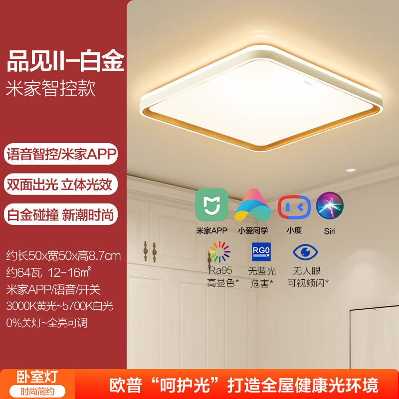 欧普照明(OPPLE) 吸顶灯客厅卧室灯米家智控LED照明灯品见 呵护光价格:561.00元!