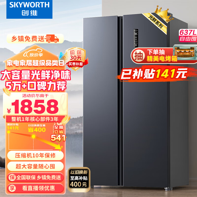创维(SKYWORTH)光鲜637升双变频一级能效风冷无霜超薄嵌入大容量对开双开门电冰箱家用BCD-637WKPSN价格:1858.00元!