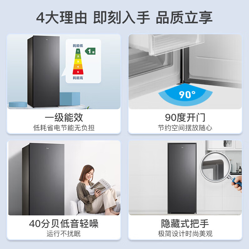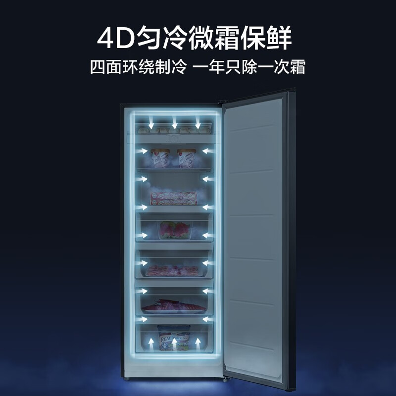 美的节能低霜家用囤货立式冰柜单温冷冻冷藏大容量立式冷柜抽屉式冷藏柜冷冻柜展示柜 【低霜立式冷柜】 196L价格:1599.00元!