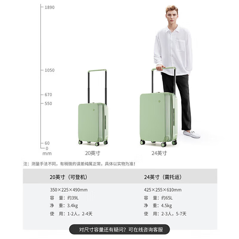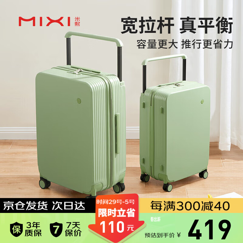 米熙高颜值宽拉杆箱子24英寸行李箱大容量旅行箱子女密码箱男牛油果绿价格:529.00元!