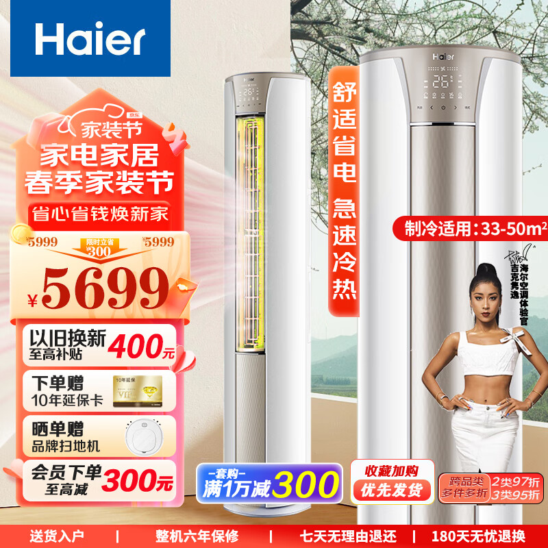 海尔(Haier)3匹空调柜机静悦新一级能效变频冷暖急速制热客厅家用自清洁空调立式柜机以旧换新价格:5699.00元!
