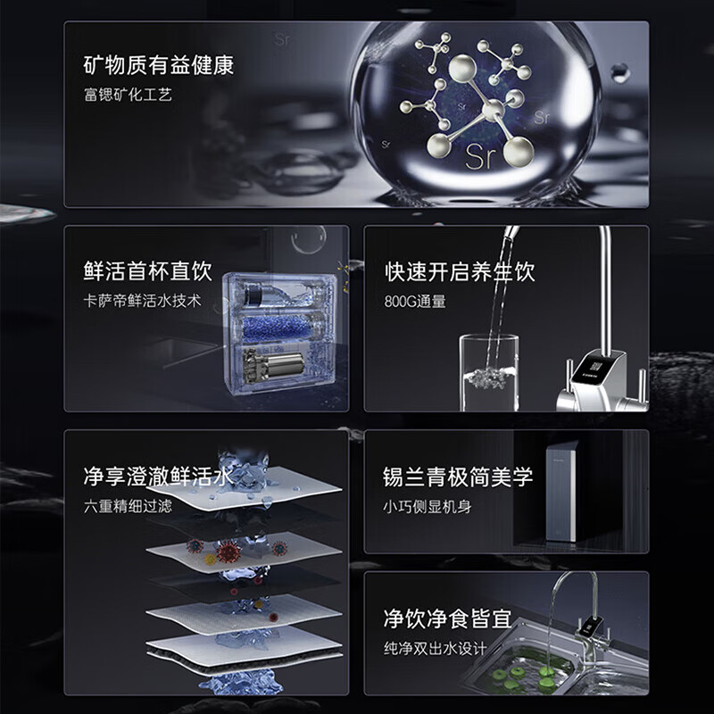 卡萨帝(Casarte)净水器家用净水机 富锶鲜活水矿泉水800G大通量纯净双出水 CRO800-DFACU1价格:4899.00元!