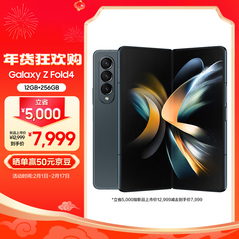 三星 SAMSUNG Galaxy Z Fold4 沉浸大屏体验 PC般强大生产力 12GB+256GB 5G折叠手机 空山绿价格:7999.00元!