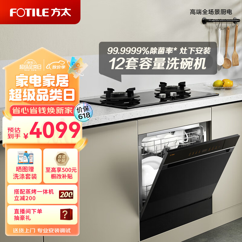 方太(FOTILE)洗碗机嵌入式家用 高能气泡洗 12套大容量 灶下洗碗机 一级水效 30min超快洗 NJ03S价格:4099.00元!