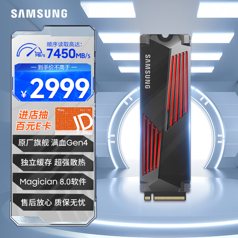 三星(SAMSUNG)4TB SSD固态硬盘 M.2接口(NVMe协议PCIe 4.0 x4) 990 PRO With Heatsink散热片版 台式机 PS5价格:2999.00元!