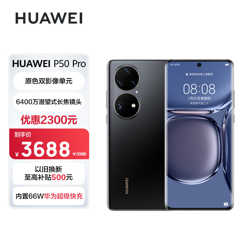 华为/HUAWEI P50 Pro 原色双影像单元 万象双环设计 基于鸿蒙操作系统 8GB+256GB曜金黑华为手机价格:3688.00元!