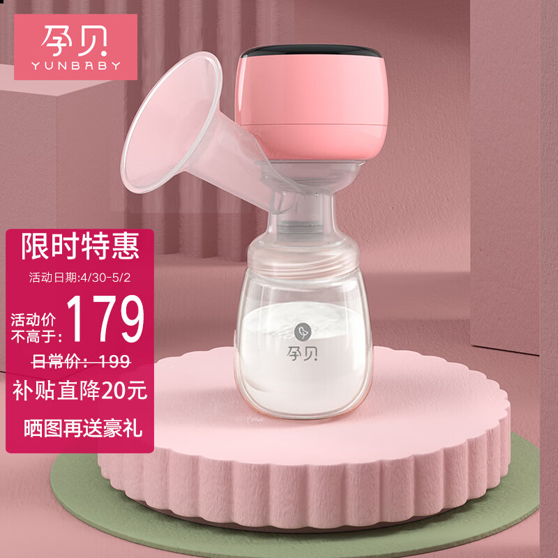 孕贝(yunbaby)电动吸奶器无痛变频吸乳器便携集乳器大吸力全自动拨奶挤奶器价格:199.00元!
