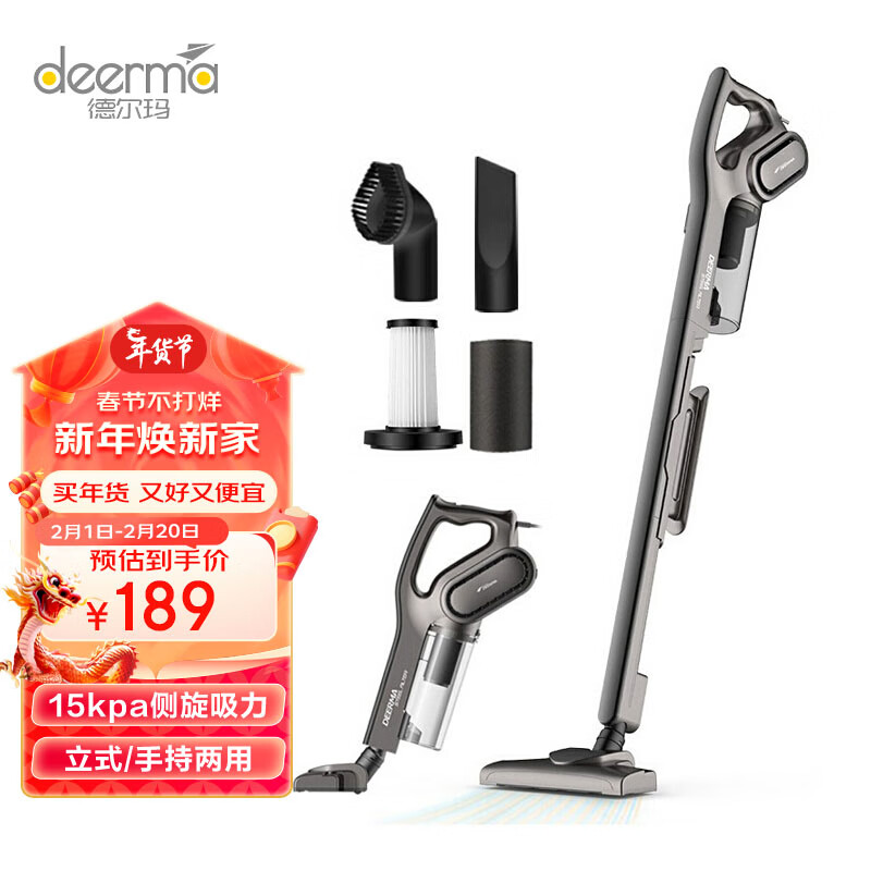 德尔玛(Deerma)DX700S小型家用立式吸尘器手持吸尘机家庭适用价格:189.00元!