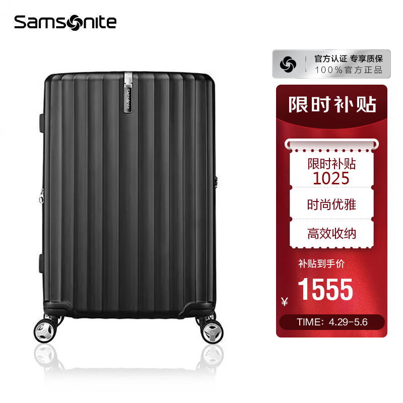 新秀丽(Samsonite)行李箱时尚竖条纹拉杆箱旅行箱黑色20英寸登机箱GU9*09001价格:1555.00元!