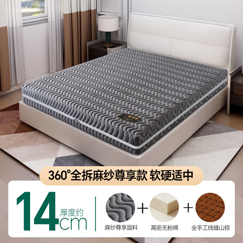 徐师傅 全手工山棕床垫硬棕垫薄厚款榻榻米床垫定制折叠1.2×1.9米价格:2775.00元!